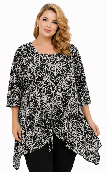 Aparte stijlvolle tuniek met mouw en ophaalkoordje van voren.